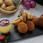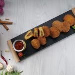 -Dip stuffed potato in whisked eggs & coat with breadcrumbs then again dip in whisked eggs & coat with breadcrumbs.