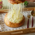 Bread bowl mein mac n cheese pasta,mozzarella cheese,parmesan cheese powder aur fresh parsley dal ker top sa cover ker dein.