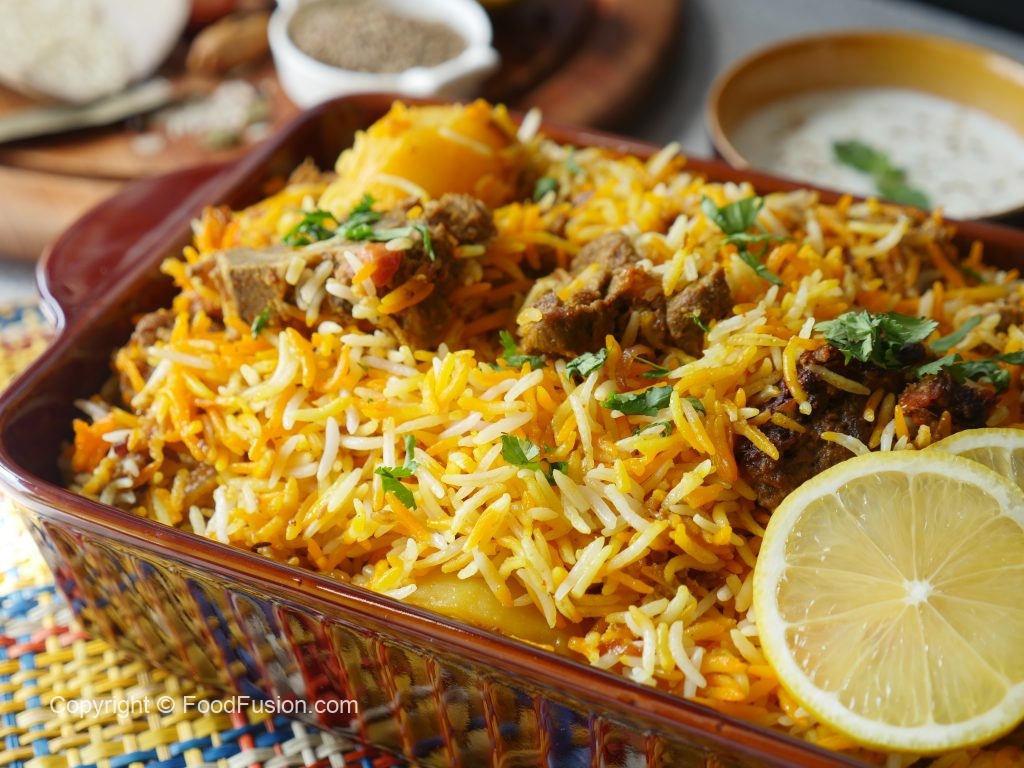 In prepared biryani marinade,add beef and mix well,cover & marinate for 1 hour.
