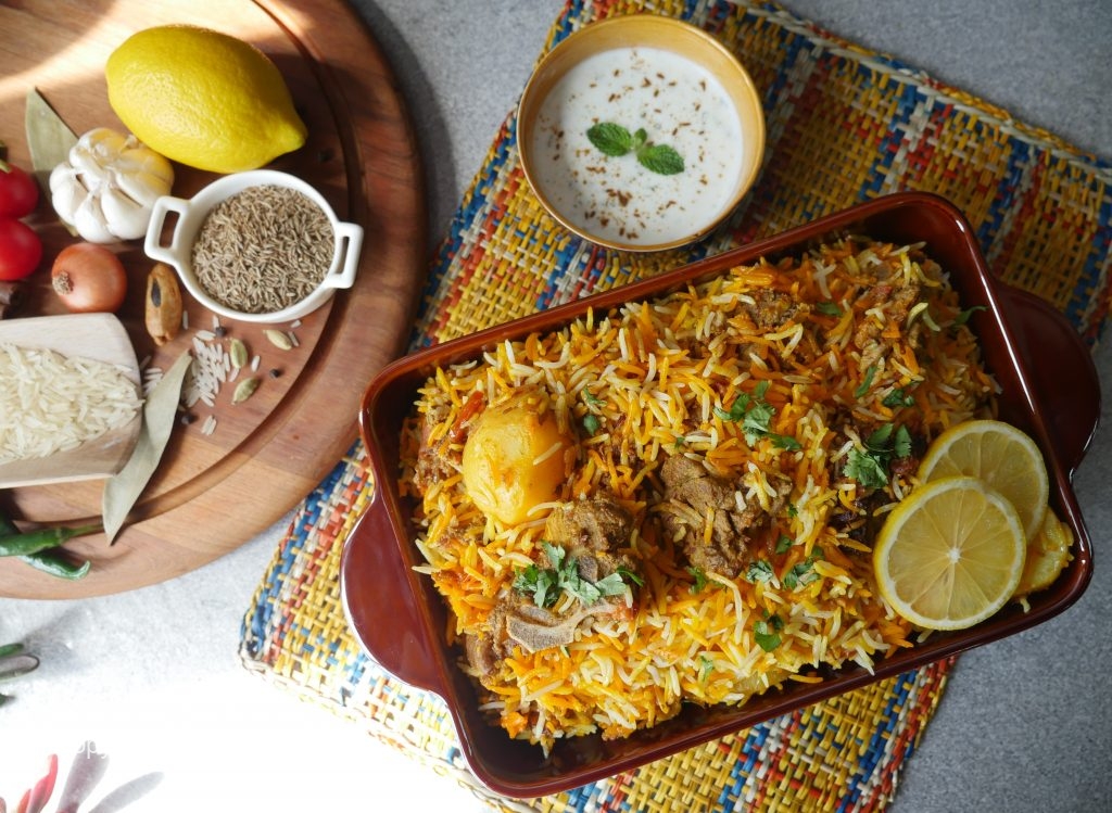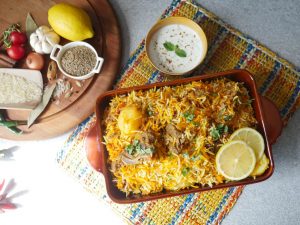 Add dissolve food color,fried onion,cover & steam cook on low flame for 10-12 minutes & serve!