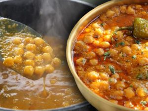 -Turn on the flame,add chickpea water,mix well & cook for 2-3 minutes & remove cinnamon sticks.