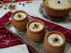 -Garnish with almonds,pistachios & dried roses.