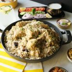-Remaining gravy mein podina,hara dhania,fried pyaz,boiled chawal ki half quantity,reserved gravy, podina,hara dhania,fried pyaz,remaining chawal,fried pyaz aur steam cooked chicken gravy ka saath dal ker dhak dein aur halki ancch per 15-18 minutes kliya steam cook ker lein.
