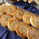 -Place tikiyan on greased baking tray,apply egg with the help of brush,sprinkle almonds & sesame seeds.