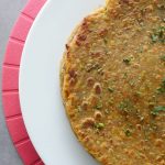 Knead dough again,take a small dough,grease hands with oil and make a ball,sprinkle dry flour,add & spread cooking oil and roll out with the help of rolling pin.