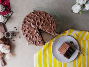 Ab tayyar chocolate frosting dal ker pheela lein aur same yehe process cake ki third layer ka saath karein aur frosting laga ker cake ki sides ko cover ker lein.