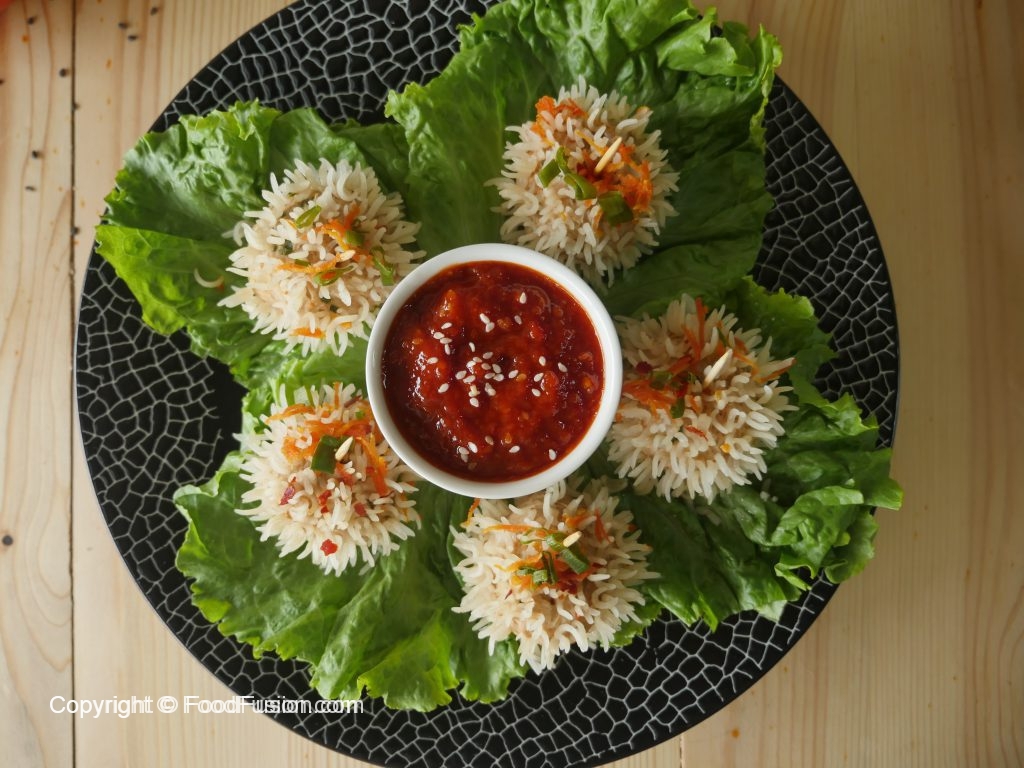 Now coat balls in soaked rice & set aside.