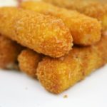 Cut the mozzarella cheese into ½ inch thick sticks.