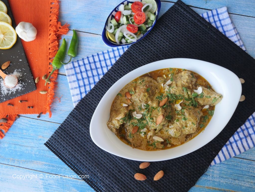 Spice mixer mrein dahi,kaju,badam,khopra,hari mirch,fried pyaz,hara dhania aur podina dal ker ache tarhan blend ker lein.
