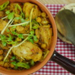 In pan heat oil, add onion and fenugreek seeds fry till light gold. Add tomatoes and when tender add GGP, chicken and red lentils and mix well. Add crushed chilies, coriander powder, turmeric, cumin powder, red chili powder and black pepper. Mix well, add water and salt and cover the lid till chicken is about to done.
