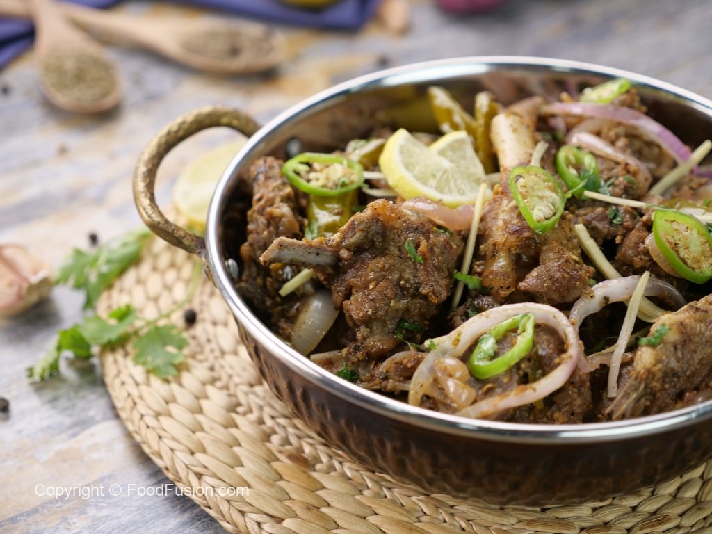 -Ab mutton ko karahi ki sides per ker dein aur center mein cooking oil,adrak lehsan paste aur hari mirch dal ker ache tarhan mix karein aur ek minute kliya sauté ker lein.