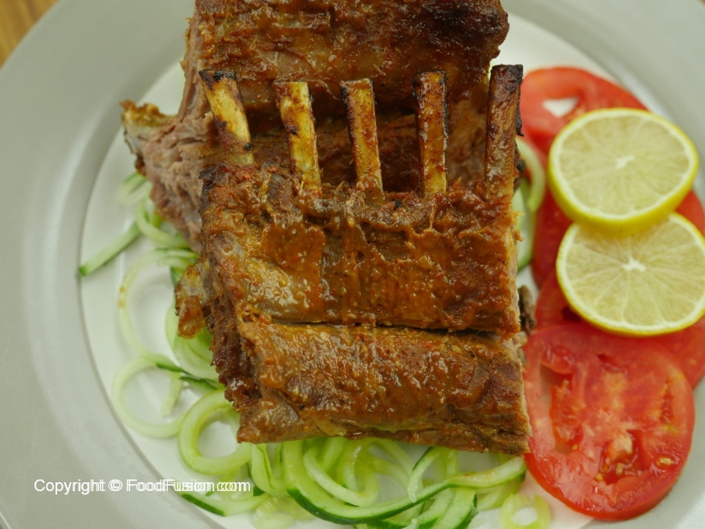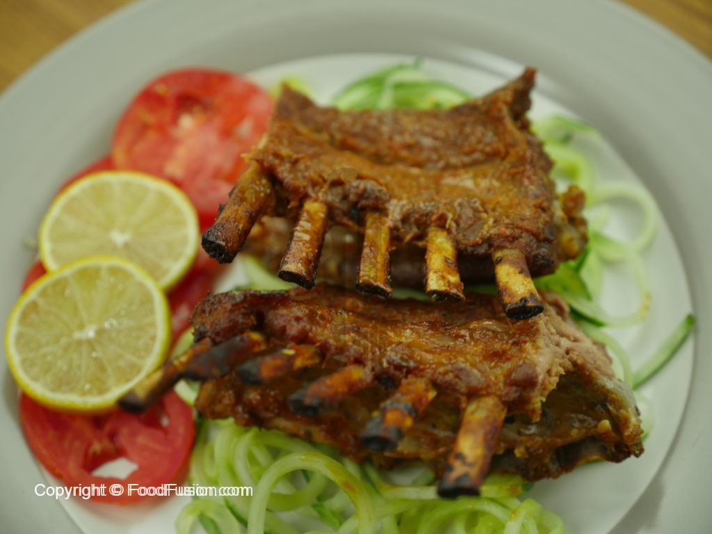 Marinated mutton ribs ko aluminum foil mein fold karein aur preheated oven mein 180 C per 1 hour kliya bake ker lein.