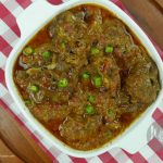 Add 2 cups of water and mix. Cover and cook until meat is tender on low flame. (You can additional water to tenderize meat)