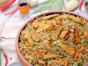 -In a frying pan,heat cooking oil & fry cheese cubes on medium flame from all sides until golden brown & set aside.