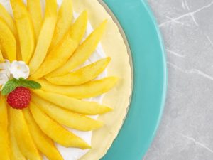 -Add & spread prepared mango cream on biscuit crust & refrigerate until set (4 hours).