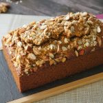 Pour prepared batter in greased loaf pan,sprinkle instant oats,almonds & walnuts.