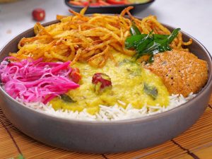 -Heat the cast iron pan,add cooking oil,marinated chicken,mix well & cook until chicken is tender (8-10 minutes) & cook until chicken is dried up & set aside.