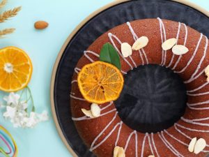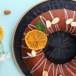 -Icing, badam aur dehydrated orange slices se garnish karen.