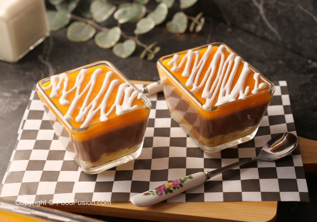 Pour gently prepared orange sauce on the back of spoon to make an even layer in the assembling dish & let it refrigerate until chilled.