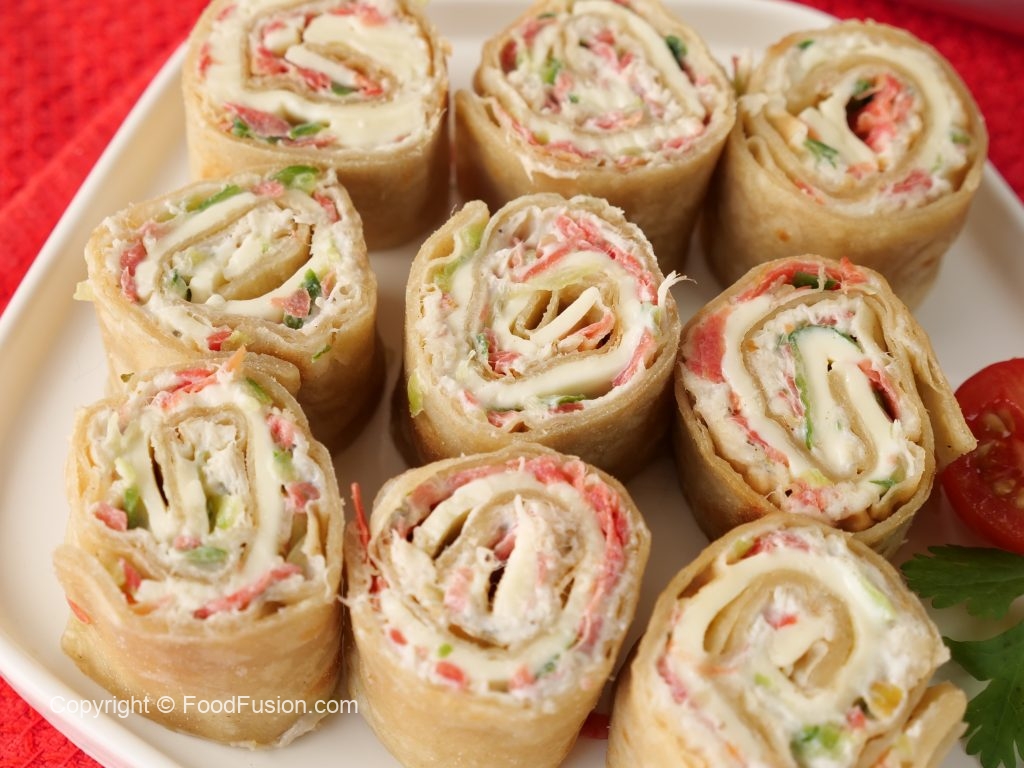 -On paratha,add & spread prepared chicken spread,cucumber,carrot,cheddar cheese slices & roll up (makes 6-8 paratha rollups).