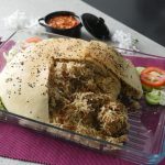 Cooked chawal,cooked meat,fried pyaz aur cooked chawal dal ker evenly pheela lein.