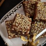 -On a greased mold,add peanuts,prepared barfi & spread evenly.