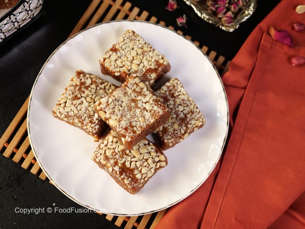 -Greased mold mein mong phalli aur tayyar barfi dal dein aur evenly pheela lein.
