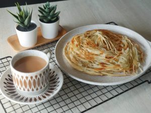 Add & spread ghee,sprinkle dry flour and cut into thin strips with cutter.