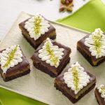 -Cut into pieces & decorate with white chocolate ganache,pistachios & serve!