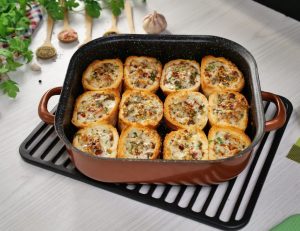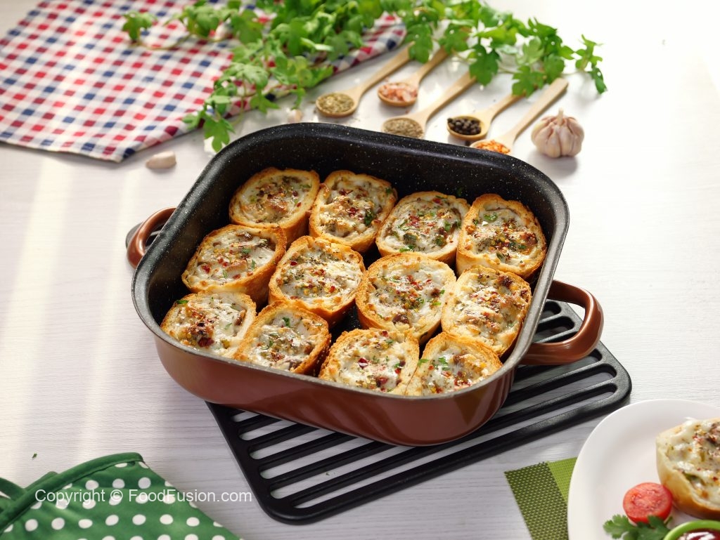 -Add cheese slice,beef filling,cheddar cheese,dried oregano & red chilli crushed (makes 12-14).
