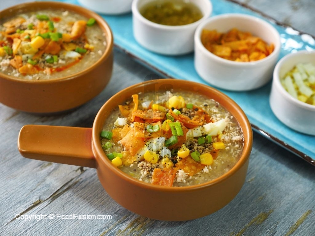 In chicken stock,add shredded chicken,grinded corns,chinese salt and chicken powder,mix well and cook on low flame for 30 minutes and keep stirring in between.