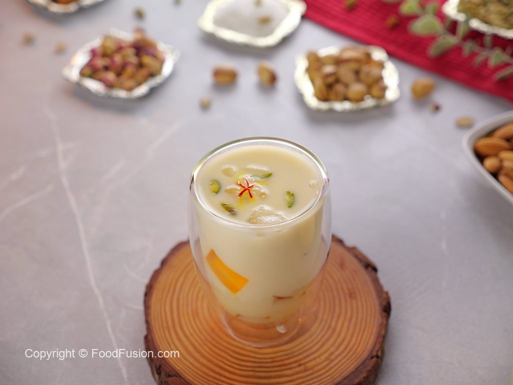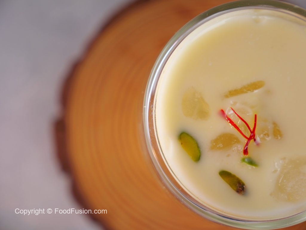 -Ek wok mein, badam zafran flavoured milk dalein aur ubal ane dein.