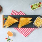 -Flip the prepared sandwich in a frying pan (butter side down),apply butter,cover & grill/cook on very low flame from both sides until golden & crispy (makes 4 sandwiches).