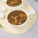 -In serving bowl,add red chilli crushed,soy sauce,sesame oil,soup,green onion leaves & serve!