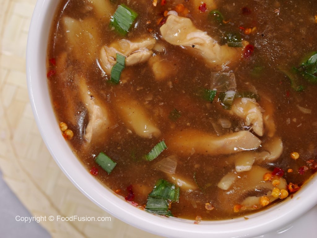 -Serving bowl mein lal mirch crushed,soy sauce,til ka tel,soup aur hara pyaz leaves dal ker serve karein!