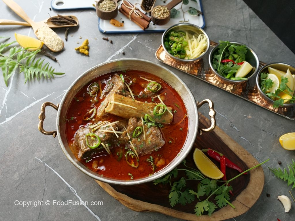 Lal mirch powder,namak,tatri,adrak powder,Kashmiri lal mirch powder aur haldi powder dal ker ache tarhan grind ker lein.Nihari masala tayyar hai.