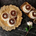 In a serving glass,add prepared sheer khurma then carefully place prepared date mousse disc over it.