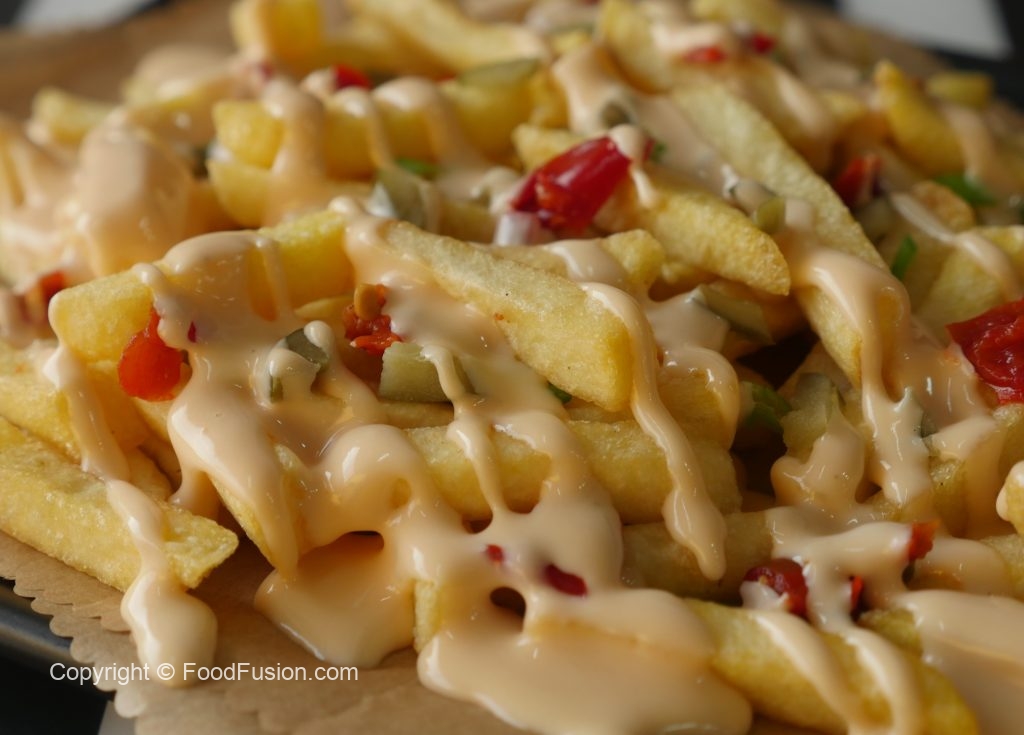 Potato fries,burger,nuggets,chicken hot shots,favoutire snacks dip sauce ka saath serve karein or as a dip sauce bhi serve ker saktay han!