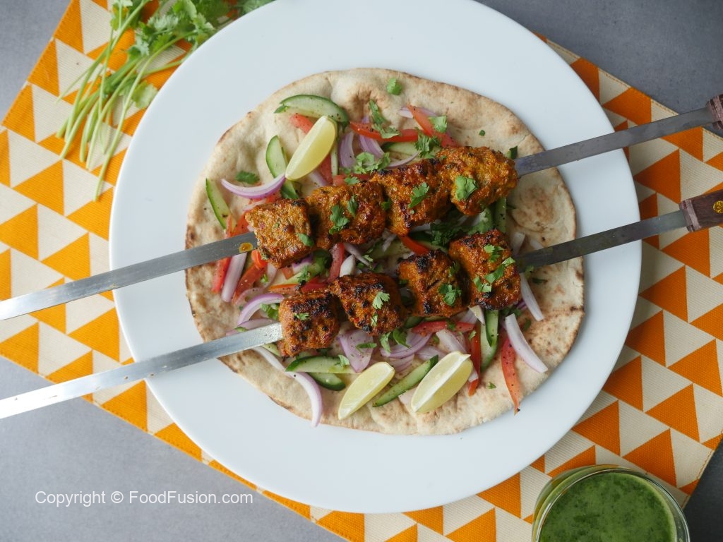 -Skewers ko (jaltay hoye koyla) bbq grill per tamam sides sa grill ker lein aur oil basting ker lein.