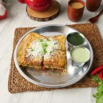 -Cheddar cheese slice,grated mozzarella cheese aur chaat masala dal dein aur dosray bread slice sa cover ka sandwich tayyar ker lein.