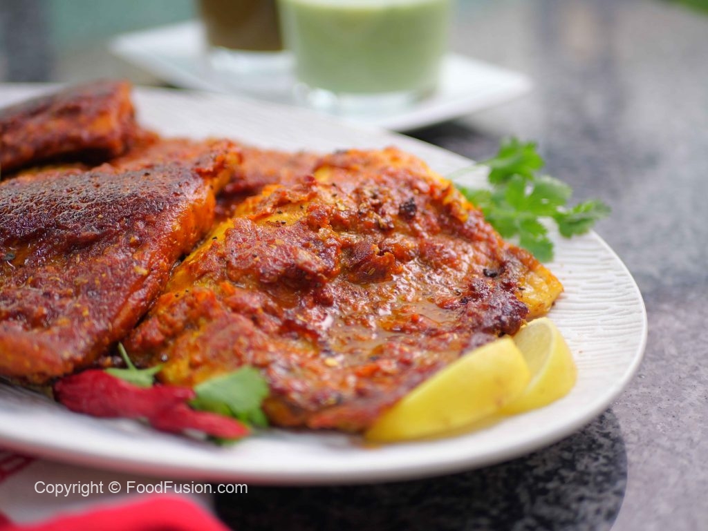 -Add carom seeds (crushed with hands), marinated fish fillet & fry on medium heat from both sides (3-4 minutes each side)