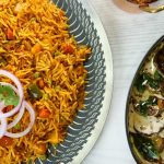 -Garnish tawa veg pulao with onion rings & serve with zucchini dahi.