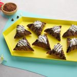 -Place pancake on baking paper,fold the corners of pancakes in a triangle shape & hold it for few seconds to stick together while the pancake is still hot (makes 11-12).