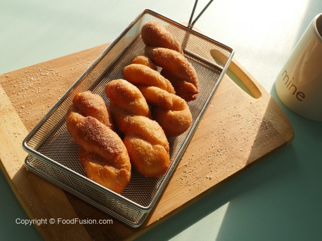 Twisted donuts ko cheeni+darchini ka mixture mein dal ker ache tarhan coat ker lein.